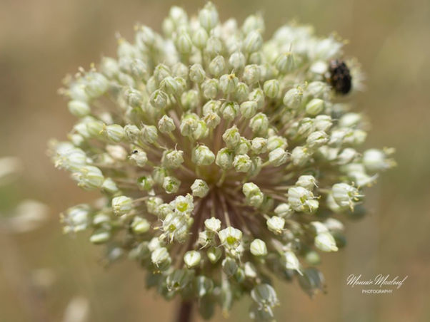 Taxonomic note : Father Mouterde treats Allium leucanthum as the white‑flowered variety var. leucanthum of A. ampeloprasum.