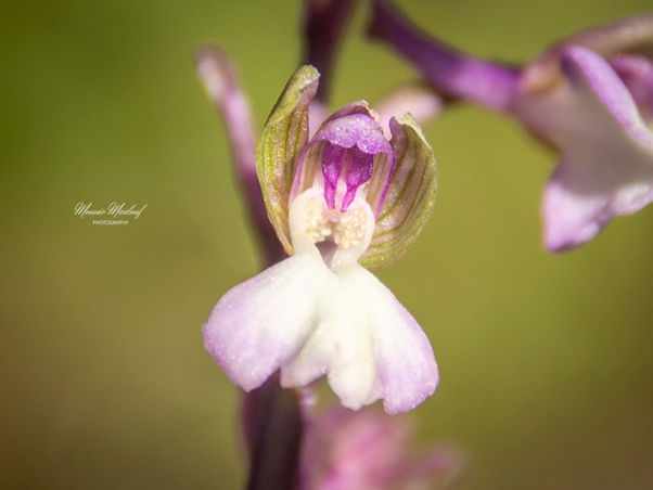 Diagnostic characters : Subsp. syriaca is distinguished from the European subsp. morio and the central-Mediterranean subsp. picta by its (i) immaculate pale lip, (ii) slightly shorter spur, and (iii) paler, often whitish overall flower colour