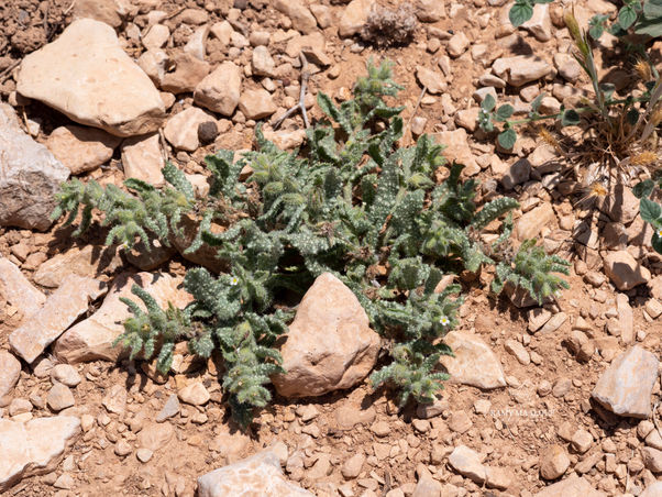 • Life-form & habit: Pale-green annual, with prostrate to ascending stems, 10–40 cm long, covered with short bristly hairs borne on whitish tubercles, harsh to the touch.