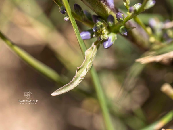 Inflorescence & flowers: Loose terminal spikes of pale blue flowers, 8 mm long, arranged in groups of 1–3, sessile or shortly pedicellate in the axils of small triangular bracts.