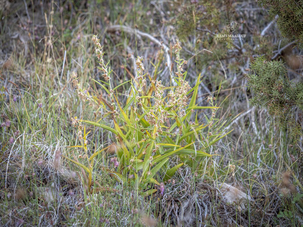 • Inflorescence & flowers: Spike 20 – 30 cm, many-flowered. Bracts leafy; flowers nodding, pedicels pubescent. Perianth brown-purple with greenish lines; lip 1 cm, hypochile narrow, epichile subtrilobed.