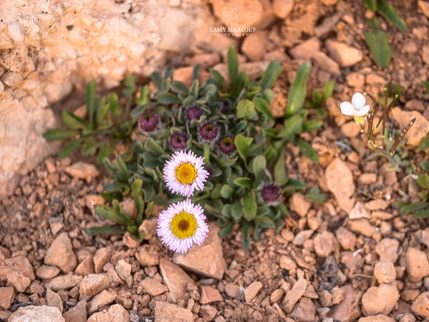 • Inflorescence & flowers: Capitula solitary, up to 2 cm in diameter. Involucral bracts green, pubescent, without membranous margins. Ligules violet, about twice as long as the involucre.