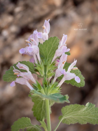 • Inflorescence & flowers: Pseudo-verticils with 6–8 flowers; the lower somewhat distant. Calyx hispid, with subulate teeth longer than half the tube. Corolla 15 – 30 mm, pale pink, striate with purple lines; tube straight, narrow, glabrous inside, dilated towards the throat; upper lip long, bifid; lateral lobes angular, slightly denticulate.