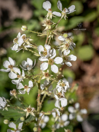 • Fruit: Aggregate of drupelets (blackberry), globose, black and shining at maturity, sweet but somewhat acid.