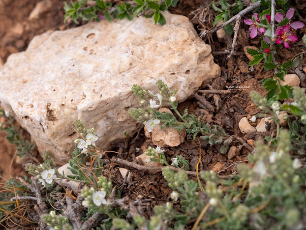 ⚠️ Taxonomic note: Mouterde distinguished this taxon from V. orientalis and V. macrostachya by its dense tomentum, revolute leaves, and small white flowers with a purplish eye. It represents a well-defined alpine species of the Veronica orientalis complex restricted to high Lebanese and Syrian mountains.
